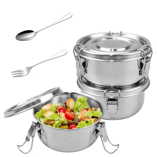 quiodok 3 Pièces Boîte à Déjeuner En Acier Inoxydable Boîte à Lunch Premium en Acier Inoxydable Boite Inox Boîtes Bento 360ml pour Collations Fruits Céréales Épices