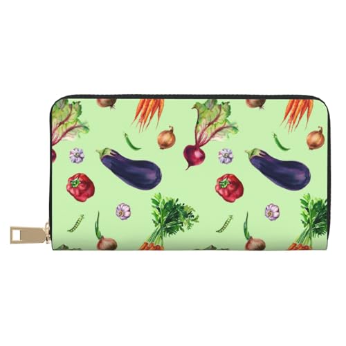 Buewutiry Portefeuille fin en cuir pour homme et femme – Portefeuille à motif oignon, ail, aubergine, avec fermeture éclair