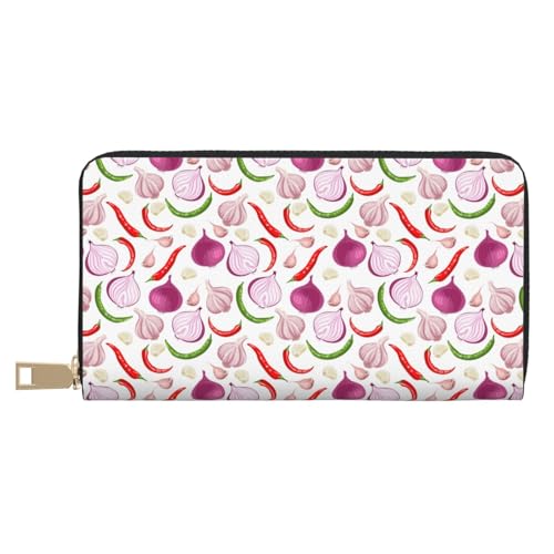 Buewutiry Portefeuille fin en cuir pour homme et femme – Portefeuille à motif oignon, ail, cloche, poivron pour homme et femme avec fermeture éclair