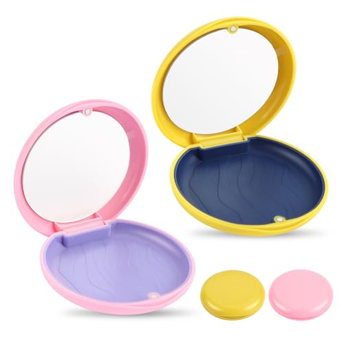 Conteneur De Trempage Pour Prothèses Dentaires,Gobelet pour Prothèse Dentaire avec Couvercle - Housse De Protection Anti-Rayures Avec Miroir - Boîtier De Nettoyage Pour Adultes Et - Usage Voyage Ou