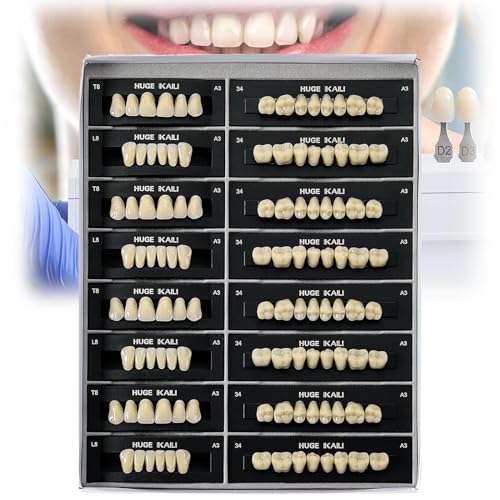 MTTXY Prothèse Dentaire en Résine Acrylique, 28 Pièces, Teinte A2/A3, Dent en Résine Polymère Synthétique pour Remplacement, Halloween, Horreur, Bricolage,A3