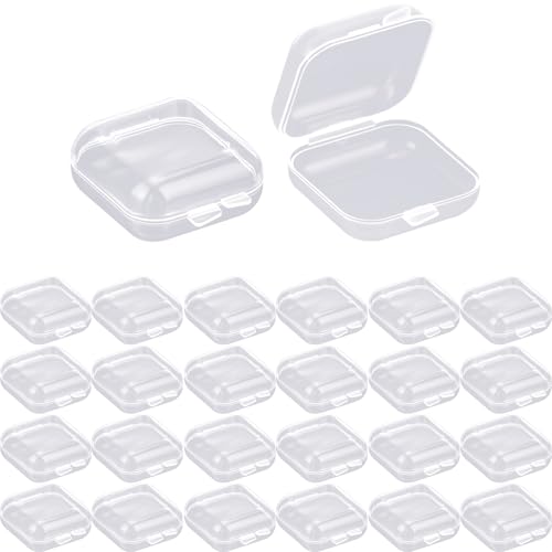 Jyvex 24Pcs Petite Boite Plastique, 3,5 x 3,5 x2,1cm Mini Boite Plastique Avec Couvercle, Transparent Petite Boite de Aangement pour les perles, les bouchons d'oreille et d'autres petits objets
