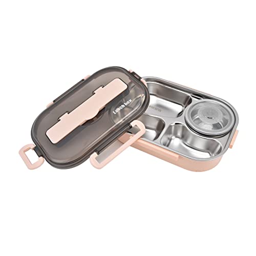 Tissting Boîte à Bento, 1,3l 4 Compartiments Portable Bonne EtanchéIté Conteneur de Salade de Déjeuner Boîte de Rangement Isolée Pour Aliments Légers Avec Couverts et Bol à Soupe(Rose)