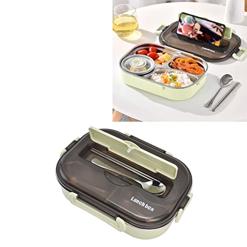 Fyearfly Boîte à bento à 4 compartiments, boîte à lunch portable en acier inoxydable 304 pour enfants 1,3 L Boîte à bento à quatre compartiments avec bol à soupe baguettes cuillère pour adultes(vert)
