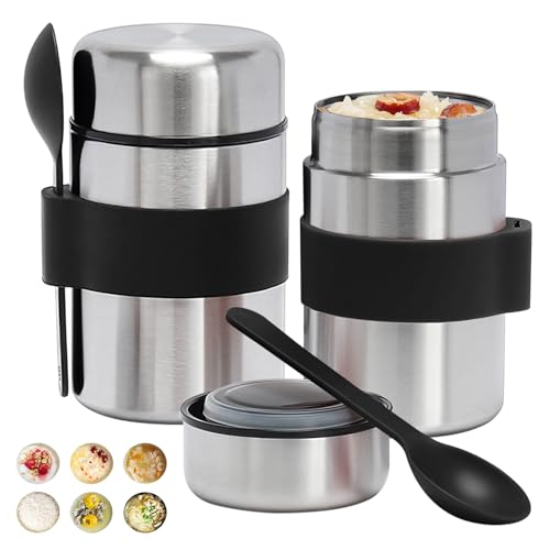 HEBEOT Flasques alimentaires pour aliments chauds, boîte à déjeuner empilable en acier inoxydable, récipient isotherme portable pour soupe alimentaire pour aliments chauds ou froids (A)