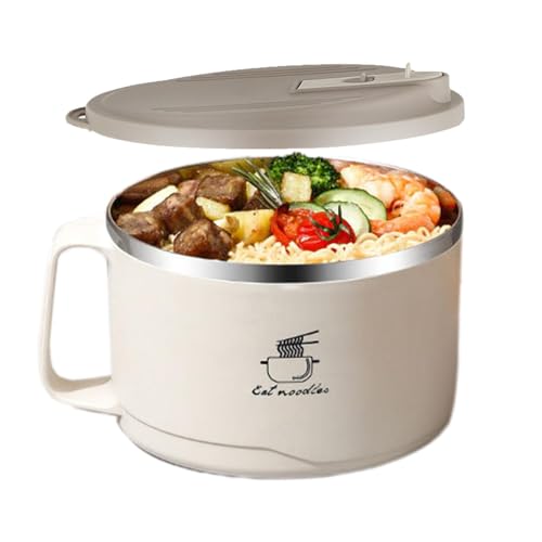 Boîte à nouilles en acier inoxydable – Bol à nouilles ramen instantané en acier inoxydable | Bol à céréales de 1100 ml avec couvercle anti-poussière et poignées pour soupe Udon, Miso, Thai, Pho –