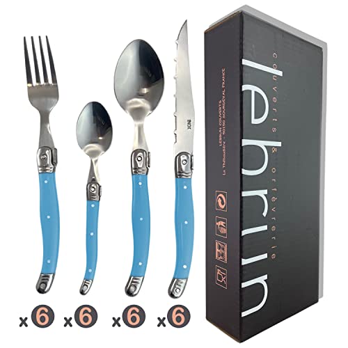 Lebrun Couverts - Type Laguiole Boite 24 Pièces - Set de Couverts en Acier Inoxydable - Ménagères pour 6 Personnes - Couteaux Steak, Fourchettes, Cuillères à soupe et Cuillères à Café
