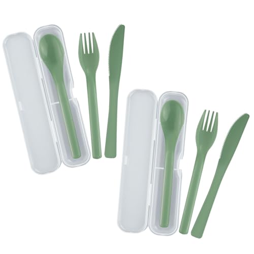 Westmark 2 sets de couverts, 3 pièces de chaque – couteau, fourchette et cuillère à soupe dans une boîte à emporter, idéal pour le camping, les pique-niques, etc. – sans BPA, vert menthe