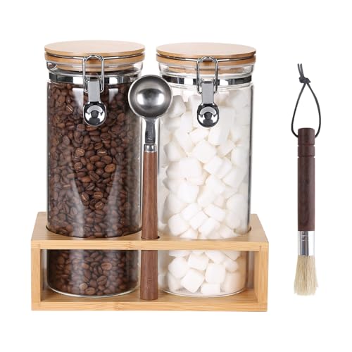 Ken's Kitchen Bocaux Rangement en Verre Hermétique Lot de 2x1500ml avec 1x cuillère,Pots et Bocaux de Conservation Cuisine avec Couvercle pour Céréales,Cornflakes,Spaghetti,boîte pour le café,le thé