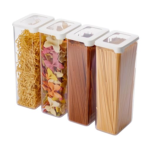 FELTECHELECTR Boîte Hermétique pour Pâtes et Spaghetti Rangement Cuisine Transparent Micro-ondable Conservation Pratique et Gain de Place pour Frigo avec Couvercle Blanc