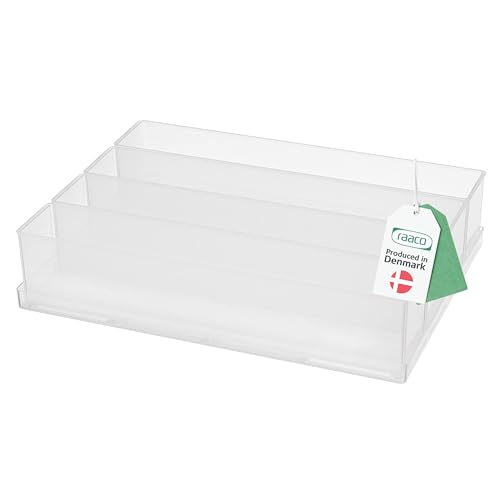 Raaco Boîte d'Insertion 55 3xA8-3, Plateau avec 3 Compartiments, Boîte de Tri Transparente pour Mallette à Outils, Boîtes de Rangement, Rangement Visserie, Facile à Nettoyer, 16,8 x 23,8 x 4,7 cm