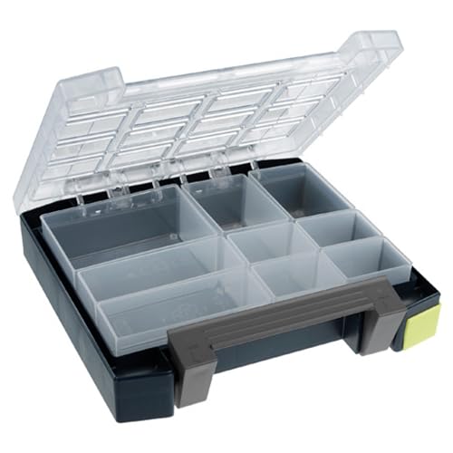 raaco CarryLite 80 4x8-9: Boîte de rangement Visserie Premium pour Atelier, 9 Compartiments, Capacité de 10 kg, Stockage Sécurisé, Portable, 27,8 x 33,7 x 7,9 cm, Boîte à Vis, Boîte à Outils Vide