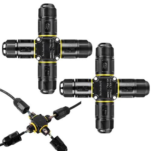 Connecteur Électrique Étanches IP68 - Raccord de Cable 3 Fils 4 voies Domino Boîte de Jonction Derivation Éxterieur, pour Câble Ø 4 à 12 mm (2 Pcs)