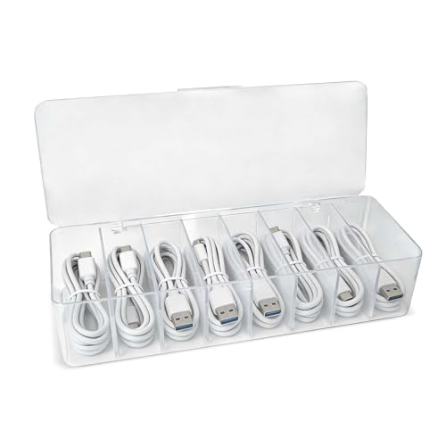 Boîte Cache Câble, Organisateur de Câbles Transparentes, avec 8 Compartiments, Organisateur Pratique pour Le Tri, Range Bureau, Protection Pratique des Câbles et Enroulement de Câble