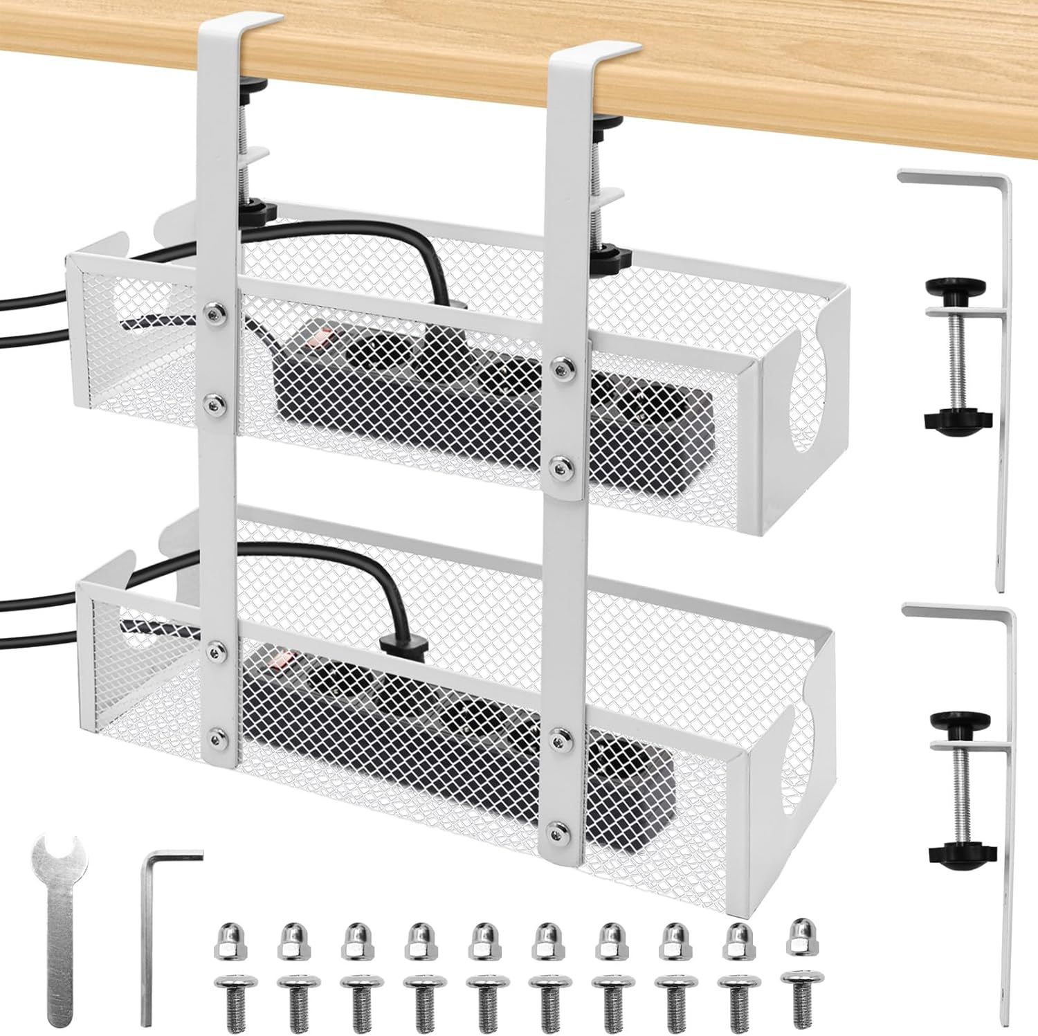Plateau De Gestion Des Câbles Sous Le Bureau Deux Couches, Rangement Cable Bureau Avec Support De Serrage, Support Multiprise Sous Bureau Sans Perçage, Hauteur Réglable Boite Range[DYB984302]