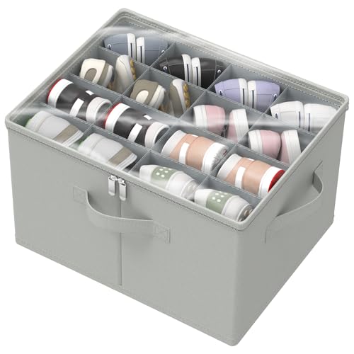Corkovia Organisateur Chaussures Réglables pour Placard,Boite Rangement Chaussures Gain de Place en Tissu avec Couvercle Transparent,Boite a Chaussure Pliable avec 3 Poignées,Idéal pour 8-16 Paires