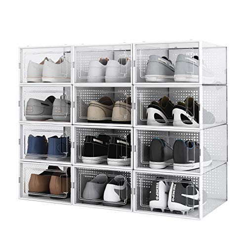 Meerveil Boite a Chaussure Boite Rangement Plastique Transparent Lot de 12 Boîte de Rangement Pliable Amovible 33.5x23x14cm