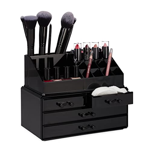 Relaxdays 10023148_46 Organisateur cosmétiques 3 parties boîte rangement maquillage Make up 21 compartiments acrylique, noir, Taille Unique