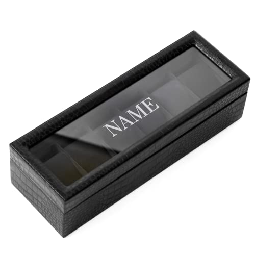 CASE ELEGANCE Boîte à Montres en Imitation de Cuir, Texture de Crocodile, Boite de Rangement pour Montres, Organisateur avec Couvercle en Verre, 6 Compartiments, Monogrammé