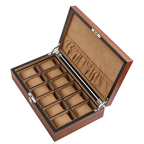 KITCISSL Boite de Rangement Montres Femme Bois Multifonctions - Coffret à Montres Homme 12 Emplacements Rangement Montre Homme - Boîtes à Bijoux et Présentoirs (Color : Brown B)