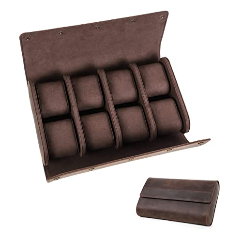 Hiram montre étui de rangement pour 8 montres fait à la main en cuir véritable montres boîte de rangement montres portables organisateur de voyage