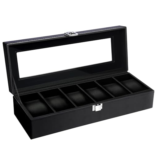 Uten Boite a Montre, 6 Emplacements Écrin à Montres en Cuir Boite Rangement Montre avec Couvercle en Verre pour Homme Femme