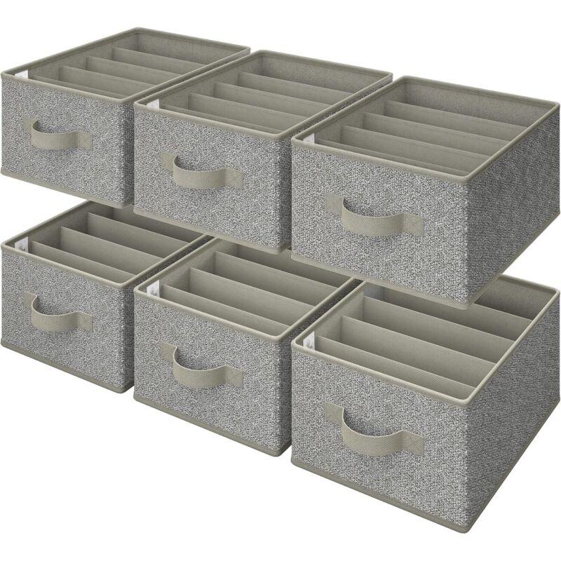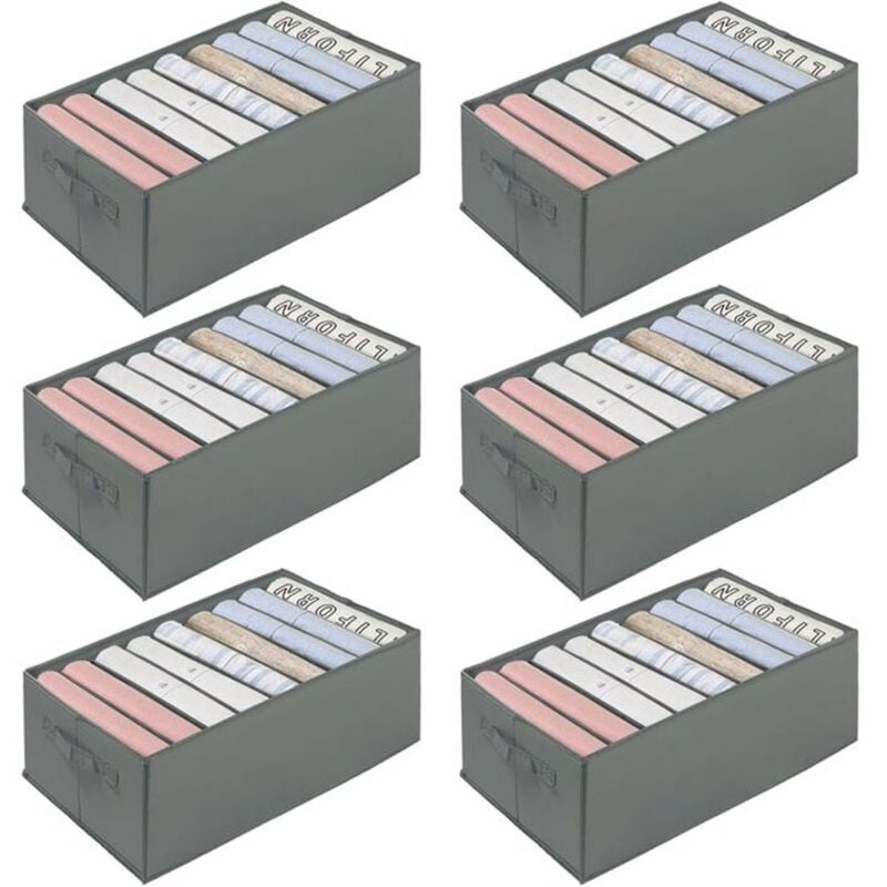 Boîte Rangement Vetement Pliable Organisateur Tiroir Lavable pour Pantalon,Chaussettes,Gilet,Leggings- Gris (6 Pcs, 34 25 17cm)
