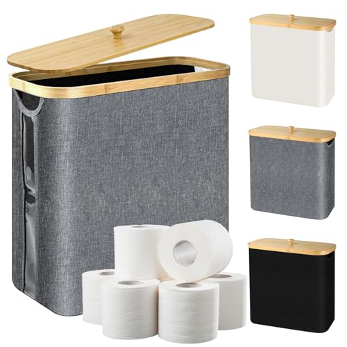efluky 28 L 2-in-1 Boite Rangement Papier Toilette avec Couvercle, Bambou Panier à Papier Hygiénique Boite Rangement Salle de Bain, Corbeille Porte-Papier Toilette pour 9 à 12 Rouleaux, Gris