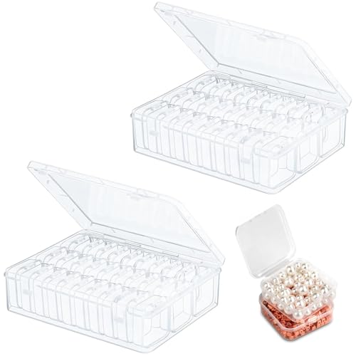 Bhina 2 Pièces Petit Organisateur de Perles, 60Petite Boite Rangement Perles Transparente avec Couvercles avec 2 Grande Rangement Plastique pour Ranger de Petits Objets, Perle, Bijoux (60 Boîtes)