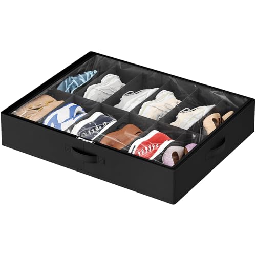 Lifewit Sacs de Rangement Chaussures avec Fenêtre Transparente, Boite Rangement Sous Lit Pliable avec Poignées pour Chaussures, Organisateur Chaussures, Noir, 1 x 12 Paires