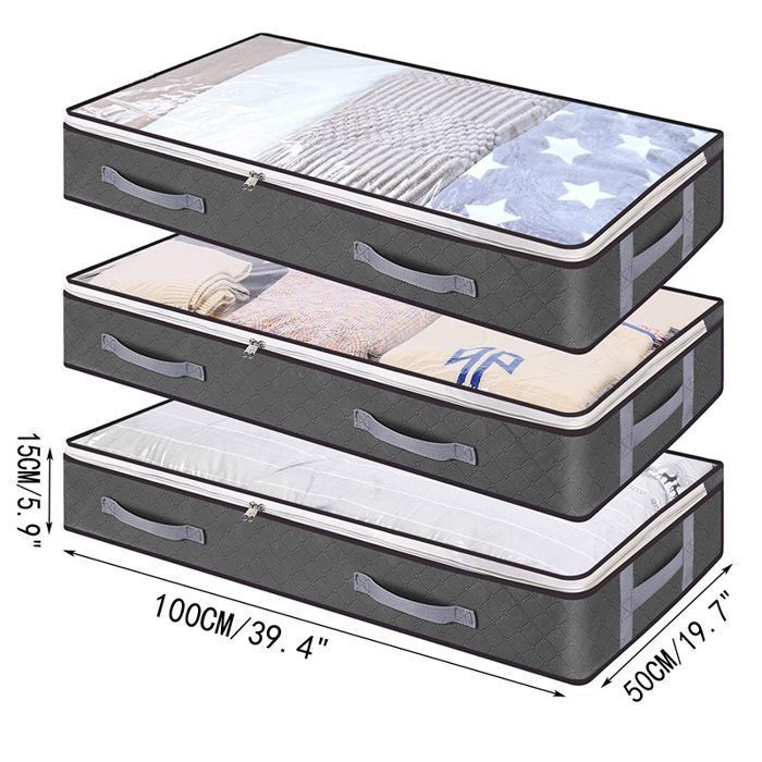 Boic Lot De 3 Bacs De Rangement Sous Le Lit, Boite Rangement Sous Lit Pliable, 90L Sac De Rangement Vetement, Housse Rangement Couette Avec Fenêtre Transparente Pour Ranger Les Vêtements, Couettes