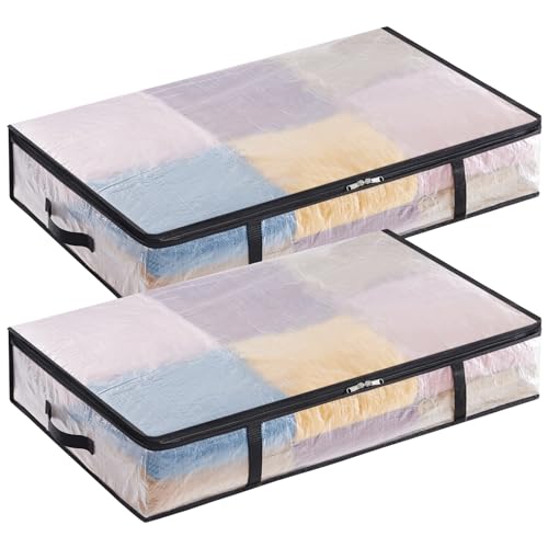 Pack de 2, Bacs de Rangement sous le Lit, Sacs de Rangement Pliables pour Vêtements avec Fenêtre Transparente, Boite Rangement Sous Lit Organisateurs pour Serviettes, Vêtements, Couvertures 100L