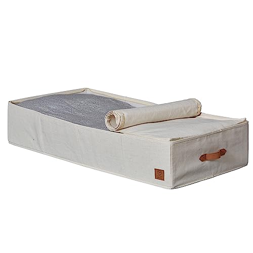 LOVE IT STORE IT - Premium - Boite de rangement sous le lit en lin avec couvercle - Boîte de rangement de vêtements - Caisse pliable pour la chambre ou la penderie - Beige - 90x45x18 cm