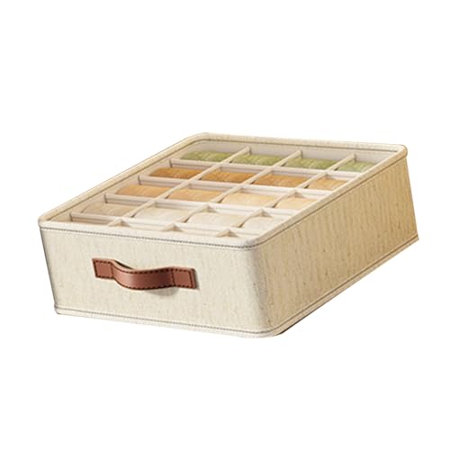 Sonew Boîte de Rangement pour Sous-vêtements en Nylon Polyester Robuste Portable et Pliable avec Séparateurs pour Soutien-gorge, Chaussettes et Sous-vêtements - Beige (Grille 24