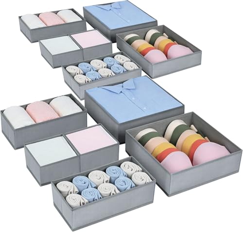 XIVIRACK Lot de 10 Organisateur de Tiroir, Boîte de Rangement pour Sous-vêtements, pour Chaussettes, Soutiens-gorge, Culottes, Cravates, Écharpes, Gris