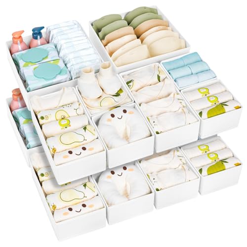 DIMJ Organisateur de Tiroir Pliable, Boîte de Rangement pour Sous-vêtements, Lot de 15 Rangement Pantalon Jean, pour, Chaussettes, Pantalons, Blanc