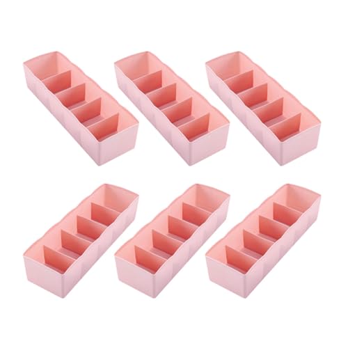 HEALEEP Organisateur de Tiroirs en Plastique 6 Pièces, Boîte de Rangement pour Sous-vêtements et Chaussettes, Séparateur Pratique, Couleur Nordique Rose, pour Maison et Placard