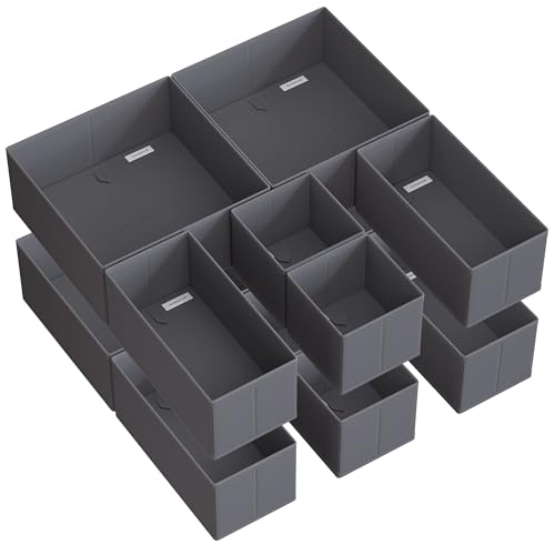 EXCLOUNT Lot de 10 Organisateur de Tiroir, Boîte de Rangement pour Sous-vêtements, Organisateur Tiroir de Non-tissé, Panier Rangement Armoire pour Chaussettes, Cravates, Ceintures, Gris