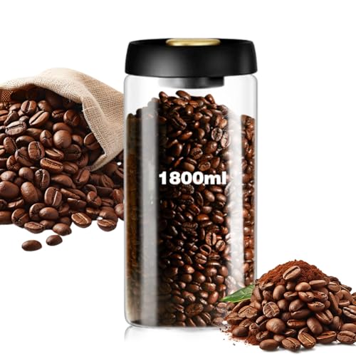 MIUUIPI Boîte à café hermétique 1800 ml, récipient à grains de café avec couvercle à pompe sous vide, boîte à café en verre, rangement durable, étanche à la lumière, pour grains de café, thé, noix