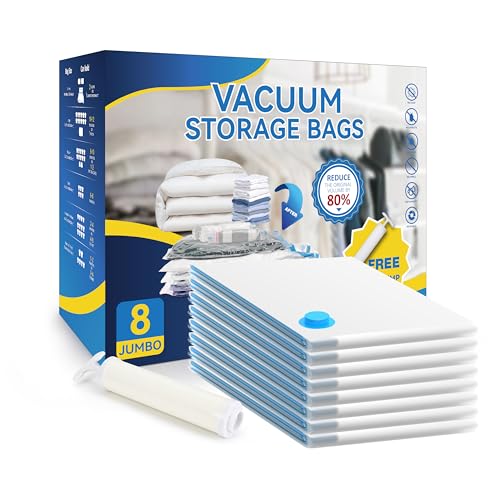 SUOCO Sacs de Rangement Sous Vide 8 Jumbo avec Pompe à Main de Voyage - Sacs de Compression Étanches Gain de Place pour Vêtements, Literie, Couettes, Grands Sacs Sous Vide pour Maison/Voyage