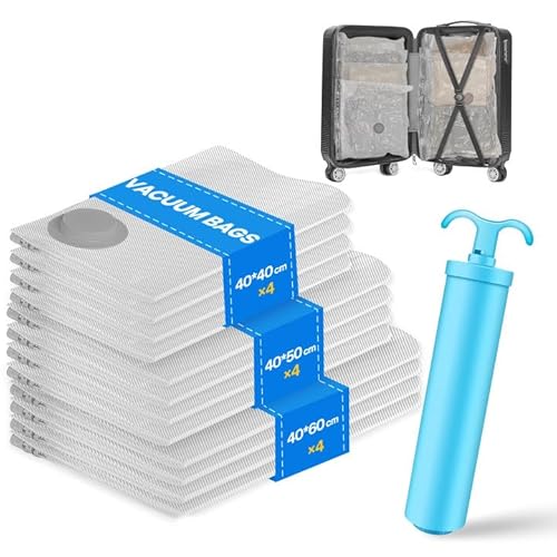 Vacbird Lot de 12 sacs sous vide pour vêtements de voyage avec pompe à main, pour le rangement et l'organisation des vêtements, peu encombrant, sacs de rangement sous vide, vêtements tels que bodys