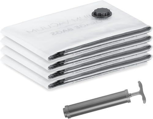 SilverRack Jumbo XL Lot de 4 sacs sous vide pour couettes, aspirateurs et vêtements, avec pompe à main et étiquettes, 80 x 100 cm