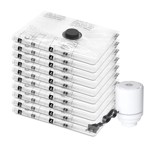 Sac Sous Vide Vetement Aspirateur Avec Pompe à Air Électrique, Lot de 12 Sacs Sous Vide Pour Couettes XL/L/M/S, Sacs Sous Vide Réutilisables Pour Voyage, Stockage et Déménagement