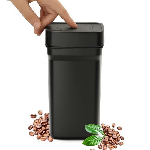 Cozary Boîte à Café Hermétique en Acier Inoxydable 400ML, Récipient à Grains de Café avec Couvercle à Pompe Sous Vide, Restez Frais et Plus Longtemps, pour Grains de Café, Thé (Noir)
