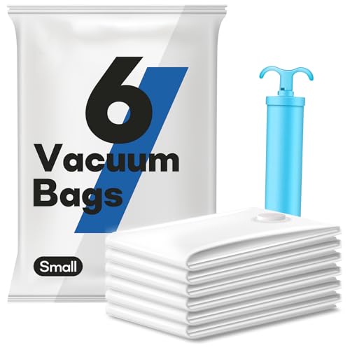 Vacbird Pochettes Sous Vide Pour Vêtements Avec Pompe À Main, Lot De 6 Petites (40 x 60 cm) Pochettes Sous Vide Réutilisables Pour Pulls, Manteaux, Draps, Couvertures, Oreillers, Peu Encombrantes