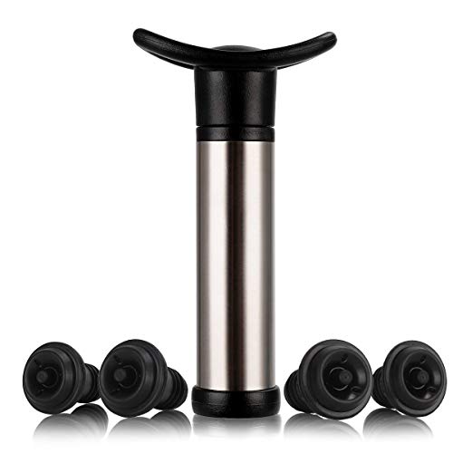 Pompe à vin Pompe à vide en acier inoxydable Wine Saver Utilisée pour la conservation du vin, la pompe à vin est utilisée pour éliminer l'air et la conservation du vin sous vide, avec 4 bouchons