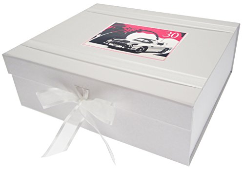 WHITE COTTON CARDS Boîte Souvenir 30ème Anniversaire, Grand, Voiture, Classique, Blanc