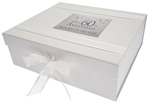 White Cotton Cards Boîte Souvenir Grand Diamant 60e Anniversaire Souvenirs de Cette année aw60lk Paillettes et Mots