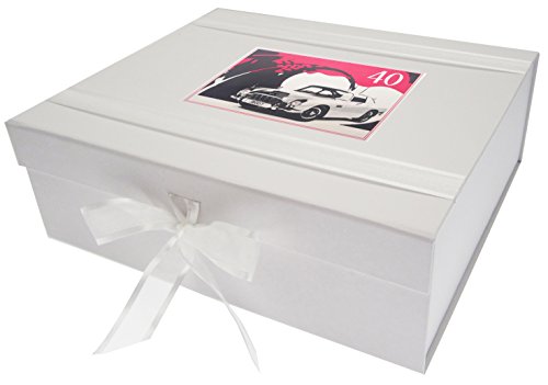 WHITE COTTON CARDS Boîte Souvenir 40th Birthday, Grand, Classique, Blanc Voiture