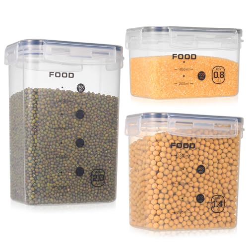 3 Pz Boite Alimentaire Plastique, 800ml 1400ml 2000ml Boîtes Alimentaires en Plastique, Boite Hermetique con Coperchi, Contenitori Ermetici per meal prep, farina, zucchero, riso, spaghetti, cereali